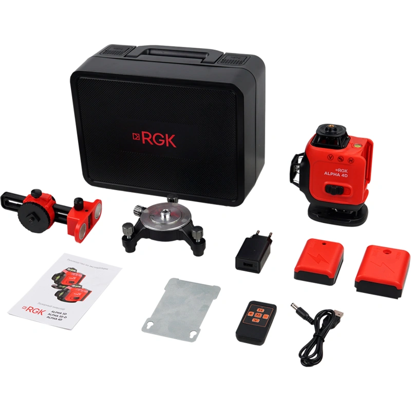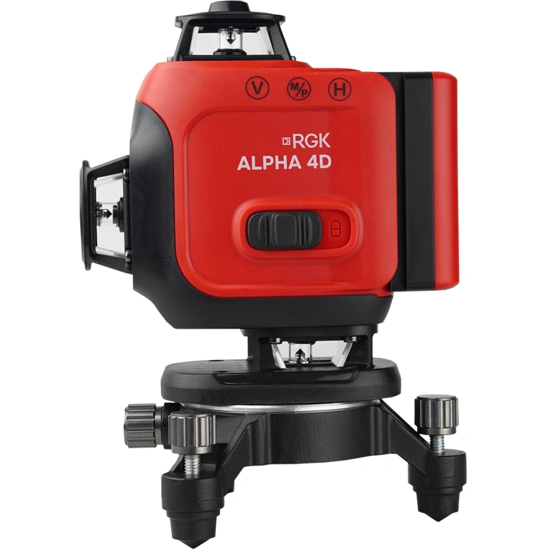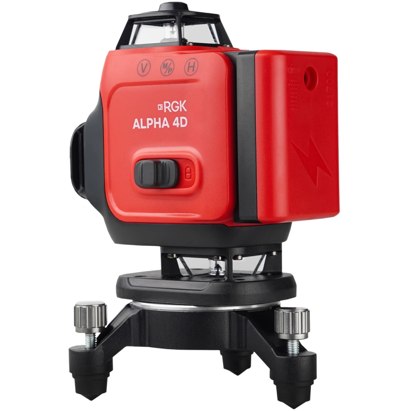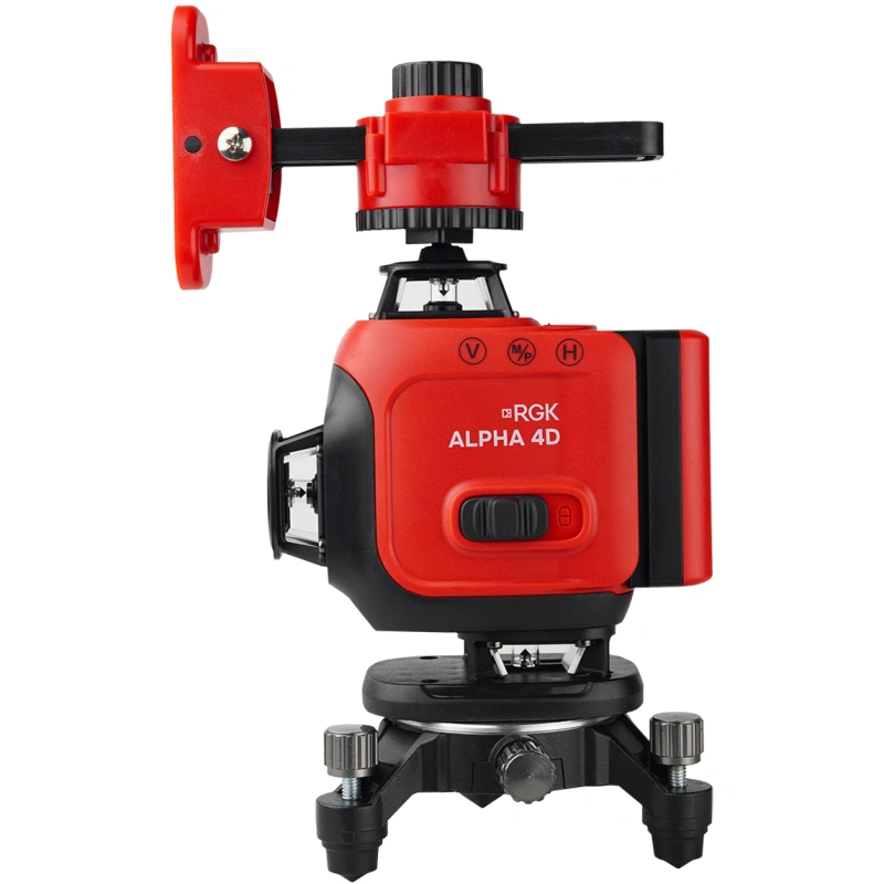 В лазерном уровне RGK ALPHA 4D используются высококачественные компоненты, включая излучатели от японского бренда SHARP, что гарантирует точность и надежность работы. Корпус оснащен трегером с нескользящими ножками для устойчивой установки. Также нивелир можно установить на штатив с резьбой ⅝" для работы на большей высоте. Универсальный магнитный кронштейн позволяет легко зафиксировать устройство на металлических профилях, что особенно удобно при монтаже гипсокартонных конструкций. Для крепления прибора к стене в комплекте предусмотрена металлическая пластина.