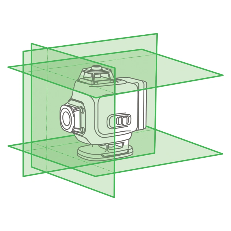 Четыре плоскости — две вертикальные и две горизонтальные — покрывают весь рабочий объем и дают свободу в разметке. Горизонтали можно использовать как у пола, так и у потолка, а вертикали — для углов и стен. Это упрощает планировку перегородок, укладку плитки, установку мебели и монтаж конструкций любой сложности.
