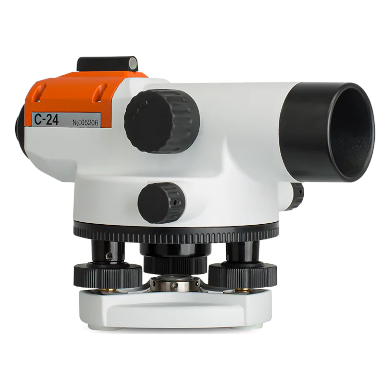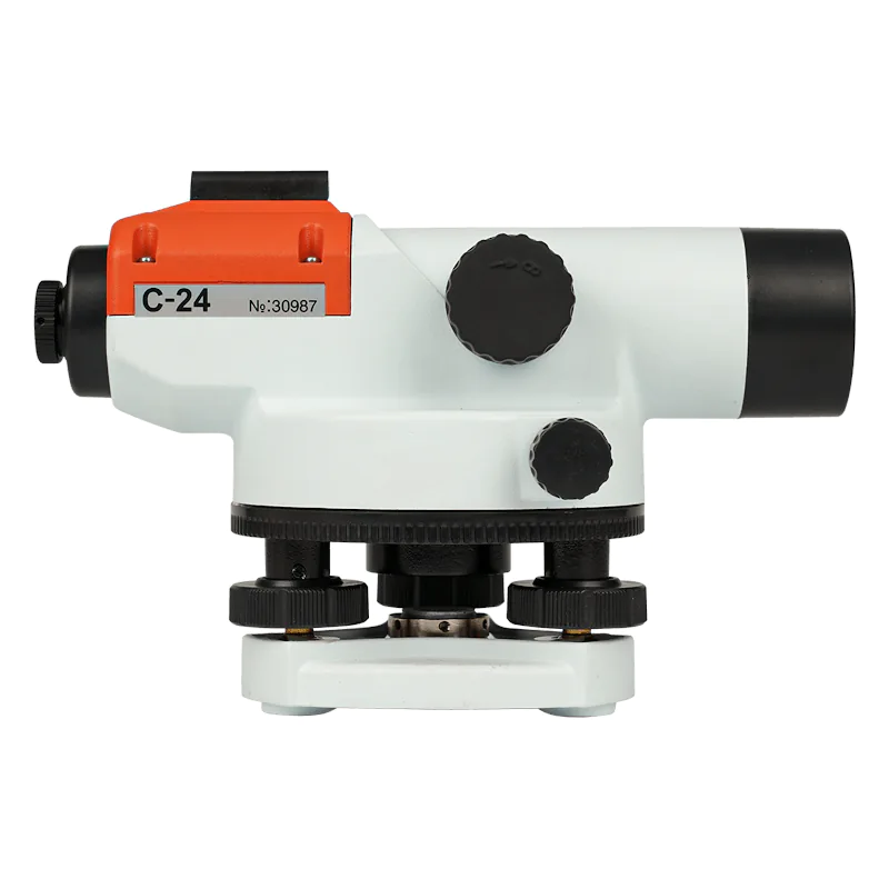 Прибор оснащен качественной оптикой, которая обеспечивает 24-кратное увеличение прямого изображения. Показатель средней квадратической ошибки на 1 км двойного хода не превышает 2 мм. За счет просветляющего покрытия изображение в зрительной трубе с диаметром объектива 32 мм остается четким и ярким. Нивелир RGK C-24 можно сфокусировать на рейке, установленной на расстоянии всего 20 см. Это упрощает работу в помещении.
