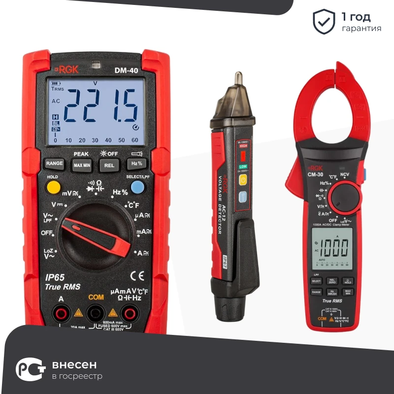RGK DM-40 цифровой мультиметр с токовыми клещами CM-30 и индикатором напряжения AC-12, 776431/755139/776394 в Нижнем Новгороде