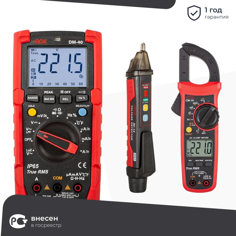 RGK DM-40 цифровой мультиметр с токовыми клещами CM-10 и индикатором напряжения AC-12, 776431/776417/776394 в Нижнем Новгороде