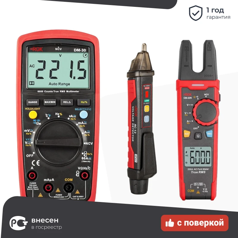 RGK DM-30 цифровой мультиметр с поверкой, с токовыми клещами CM-22N и индикатором напряжения AC-12 779654/721487/776394 в Нижнем Новгороде