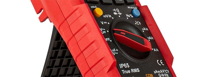 Корпус с защитой IP65 не боится пыли и брызг. Даже при падении с высоты до двух метров прибор продолжает работать. Встроенные предохранители и сигнализация уберегают от перенапряжения до 6 кВ. Категория безопасности CAT III 600 В позволяет работать с распределительными щитами и другим серьезным оборудованием.