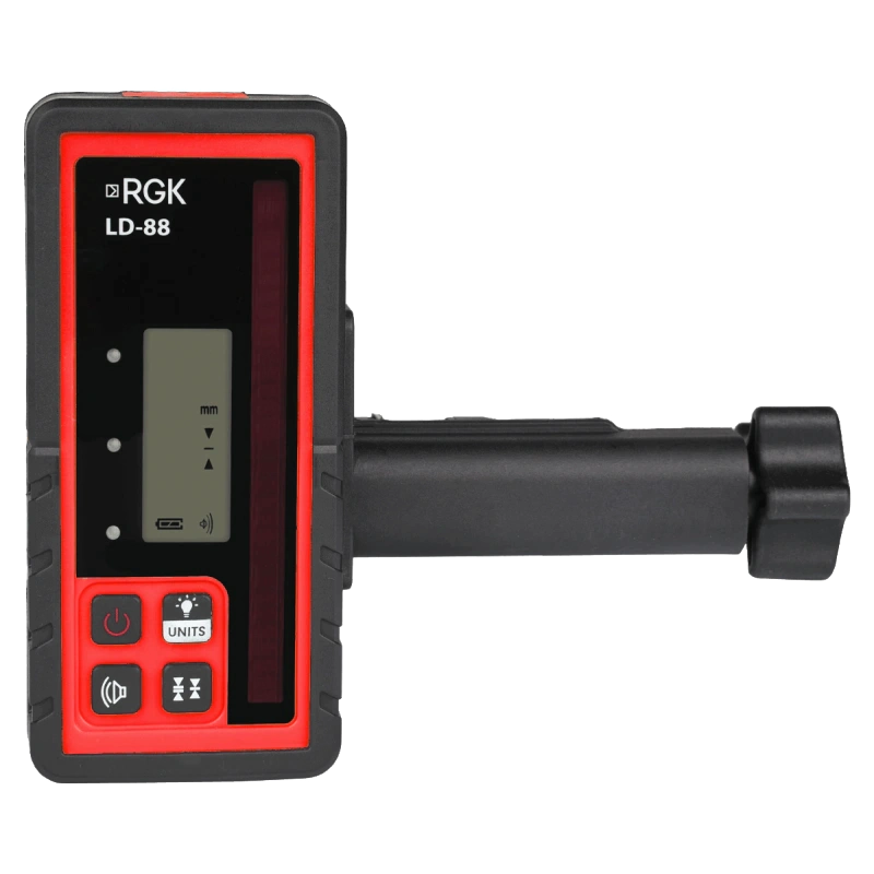 Лазерный приемник RGK LD-88 увеличивает рабочий диапазон ротационных и линейных лазерных нивелиров до 300 м. Также, прибор значительно облегчает работу при ярком солнечном освещении или на темных поверхностях, когда лазерный луч плохо заметен.