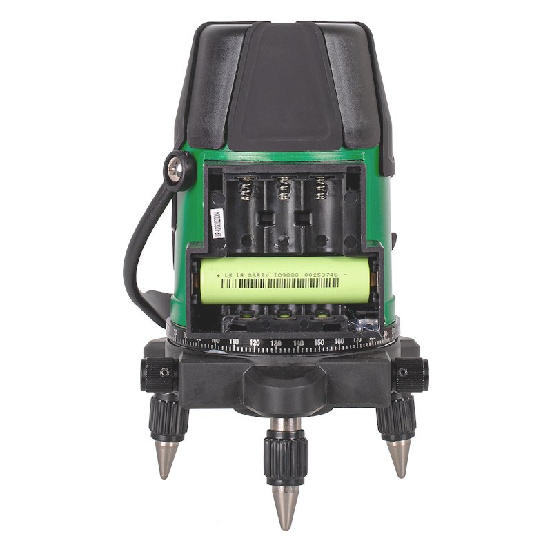 Пузырьковый уровень на корпусе и лазерный отвес облегчат поиск места для размещения нивелира. При этом модель выравнивает лучи относительно горизонта, если находится на поверхности под наклоном до 4°.