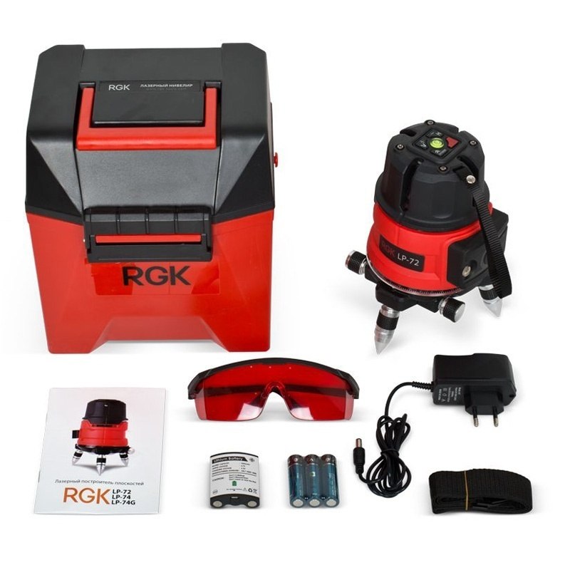 Лазерный уровень RGK LP-72 создает горизонтальную и 2 вертикальные плоскости. При использовании приемника лучи проецируются на дальность до 40 м. Есть лазерный отвес для простого размещения прибора в нужной точке. Поставляется в пластиковом кейсе.