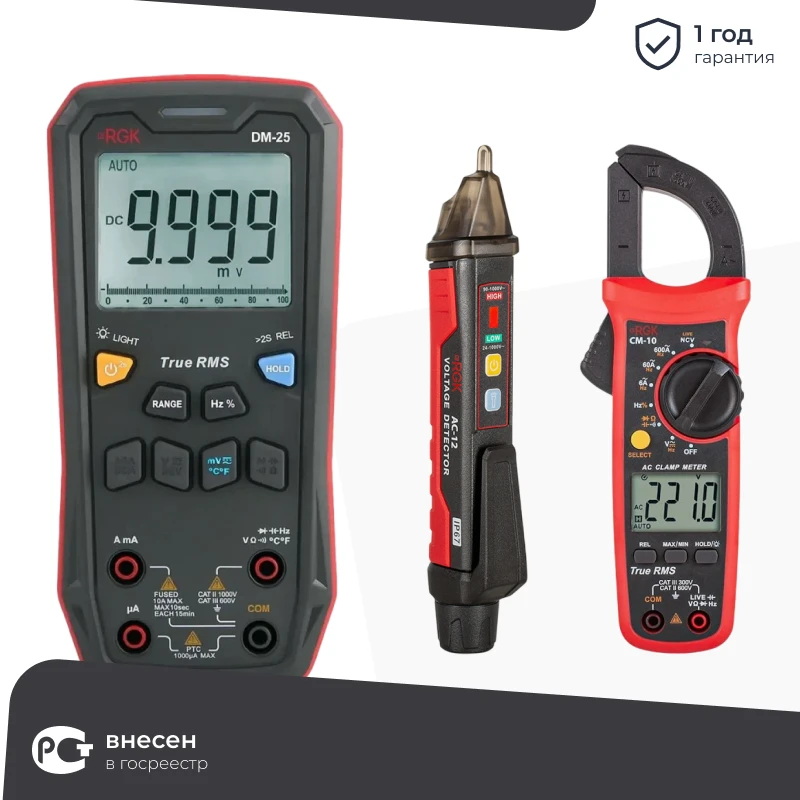 RGK DM-25 мультиметр цифровой с токовыми клещами CM-10 и индикатором напряжения AC-12, 755160/776417/776394 в Нижнем Новгороде