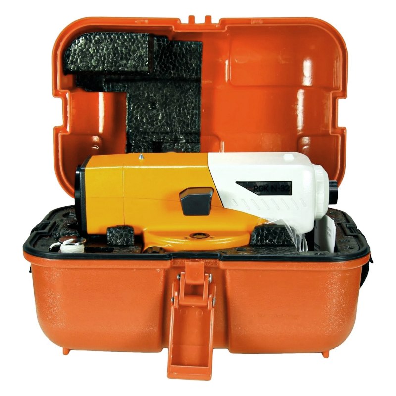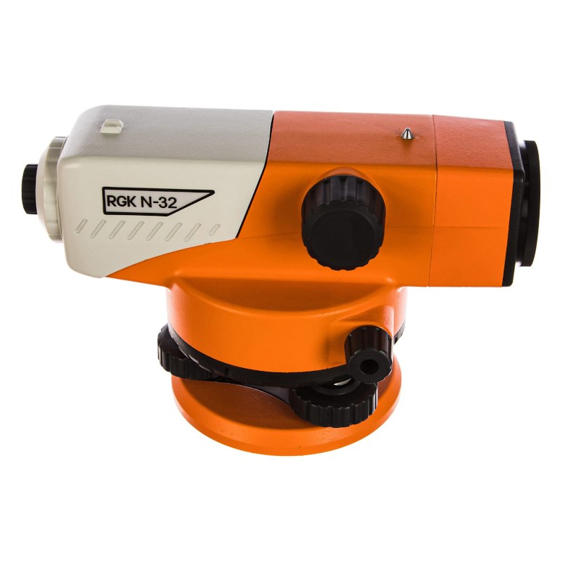 Корпус геодезического нивелира RGK N-32 выполнен из металла для придания прочности всей конструкции. Благодаря этому инструмент дольше прослужит даже при интенсивном использовании на строительной площадке.