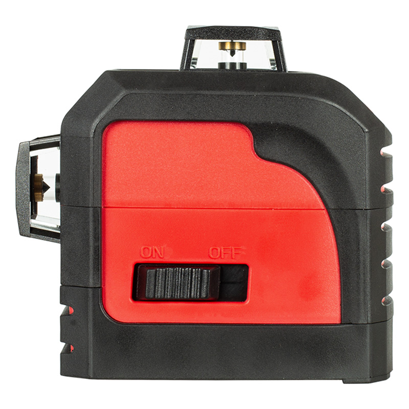 Вертикальные лазерные лучи, а также горизонтальная линия включаются поочередно. Это поможет экономить заряд батареи, если вам не нужно работать со всеми плоскостями одновременно. Лучи переключаются тремя кнопками, которые расположены в передней части корпуса.