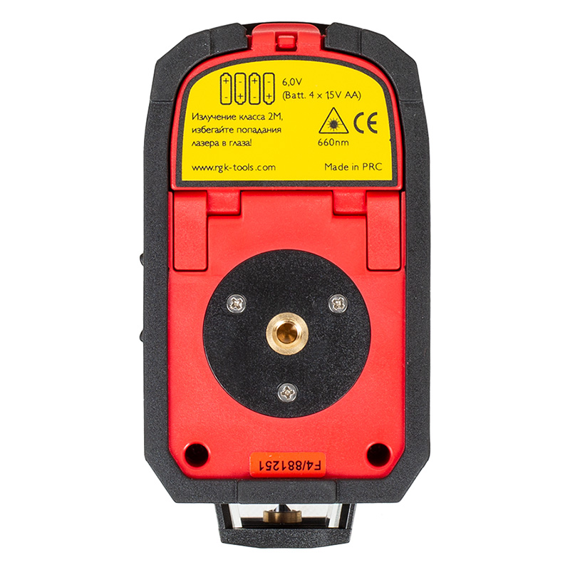 На корпусе есть две резьбы под штатив. Крепление типа 1/4" подходит для стандартных штативов. Разъем 5/8" подходит к большинству геодезических треног. С помощью штативов можно проецировать лазерные линии на определенной высоте и плавно поворачивать прибор вокруг своей оси.