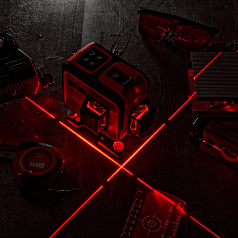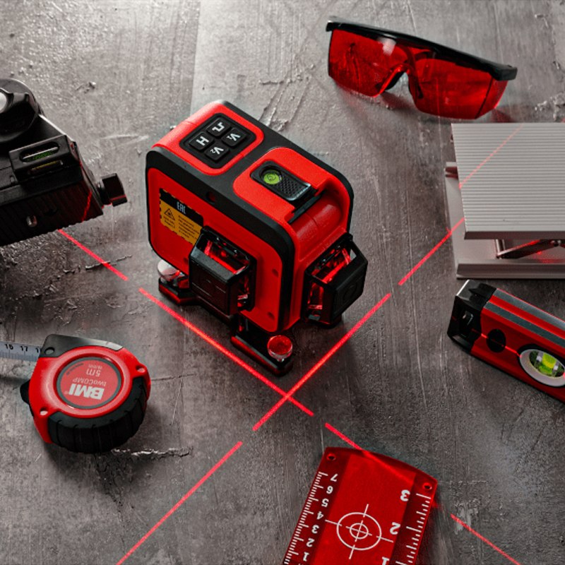 Вертикальные линии можно проецировать почти вплотную к стене — удобно при выравнивании углов и стыковке плитки.