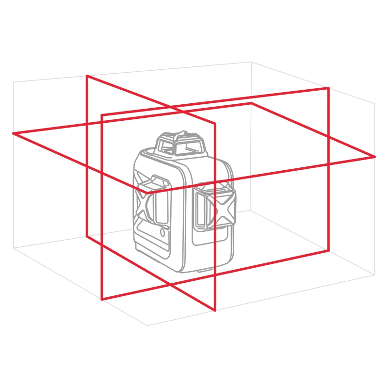 Лазерный уровень проецирует 1 горизонтальную и 2 вертикальные линии с разверткой в 360 °. Лучи включаются как вместе, так и по отдельности, чтобы сэкономить заряд аккумулятора. Лазерные проекции позволят создать точную разметку для монтажных, отделочных или строительных работ. А при блокировке компенсатора модель сможет выстраивать наклонные линии.