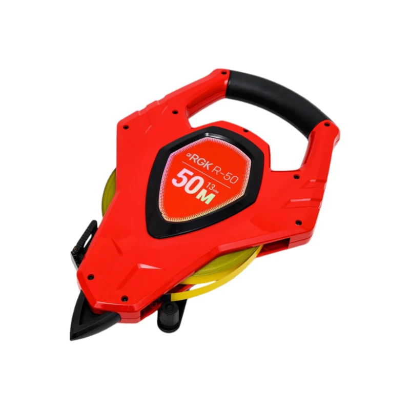 Геодезическая рулетка RGK R-50 сделана из прочного пластика. Такой материал не подвергается образованию коррозии и не утяжеляет инструмент. Износоустойчивость нейлона позволяет ленте не портиться быстро от частого контакта с бетоном, деревом и другими шершавыми поверхностями. Помимо этого, диэлектрические свойства материала полностью исключают риск поражения током при случайном контакте с электрикой.