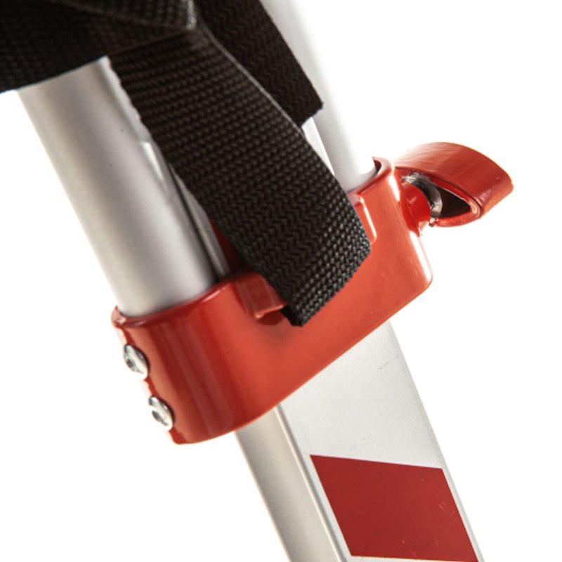 Некоторые элементы конструкции окрашены в яркий оранжевый цвет, а на стойки нанесены контрастные полосы. Такое оформление делает треногу более заметной и повышает безопасность работ на стройплощадке.
