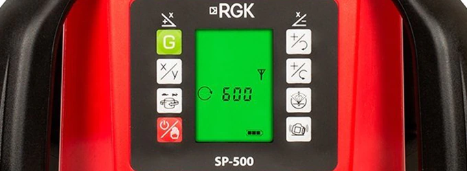 Ротационный нивелир RGK SP-500 – профессиональная модель, которая проецирует горизонтальный или вертикальный луч с дальностью действия до 900 м с приемником. Для удобной настройки работы прибора предусмотрен дисплей.