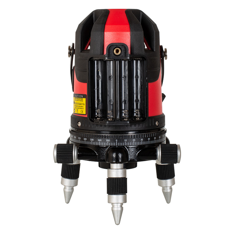 Встроенный маятниковый компенсатор выравнивает лучи относительно горизонта, если прибор установлен на кривую поверхность. А если отклонение слишком сильное, то положение лазерного построителя плоскостей можно изменить при помощи трегерных винтов, а также встроенного пузырькового уровня.