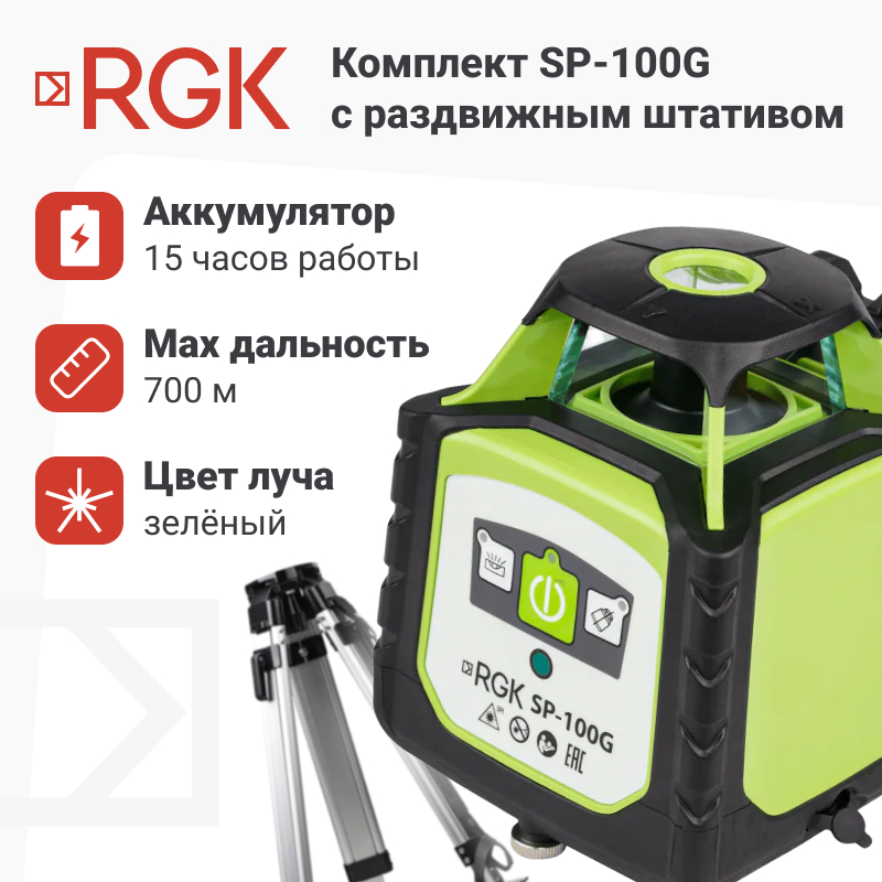 RGK SP-100G COMBO ротационный нивелир с раздвижным штативом , 759557 в Нижнем Новгороде