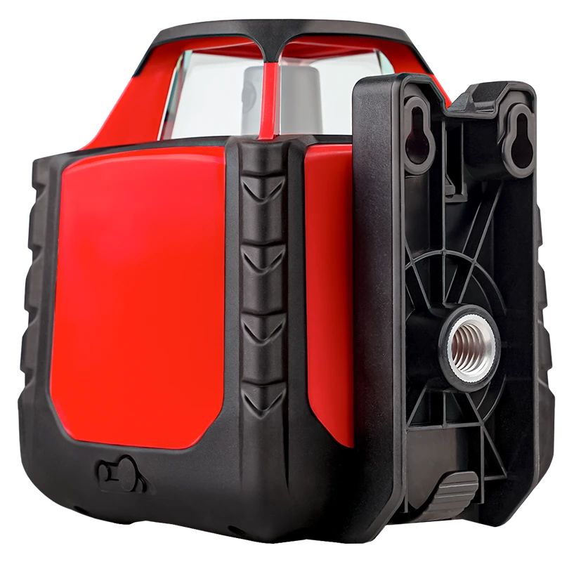 Ротационный нивелир проецирует замкнутую горизонтальную плоскость с разверткой 360⁰ и точку зенита. Скорость вращения излучателя регулируется с учетом интенсивности освещения и расстояния до объекта. Круговую проекцию можно сузить до сектора 10º, 45º, 90º или 180º, чтобы не мешать коллегам, работающим с лазерными уровнями. Отключение самовыравнивания позволяет строить линии под любым углом.